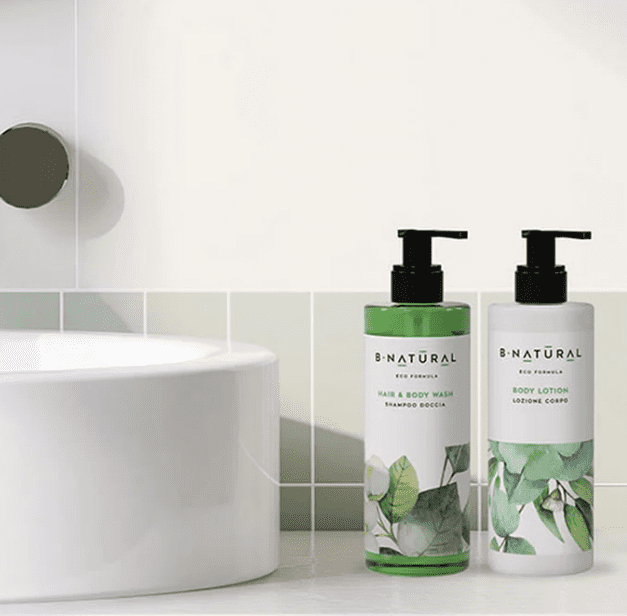 B Natural est la collection idéale pour ceux qui souhaitent chouchouter leurs hôtes tout en respectant la planète . Grâce à ses formules véganes contenant au moins 95 % d'ingrédients naturels , elle prend soin de la peau et des cheveux en douceur.